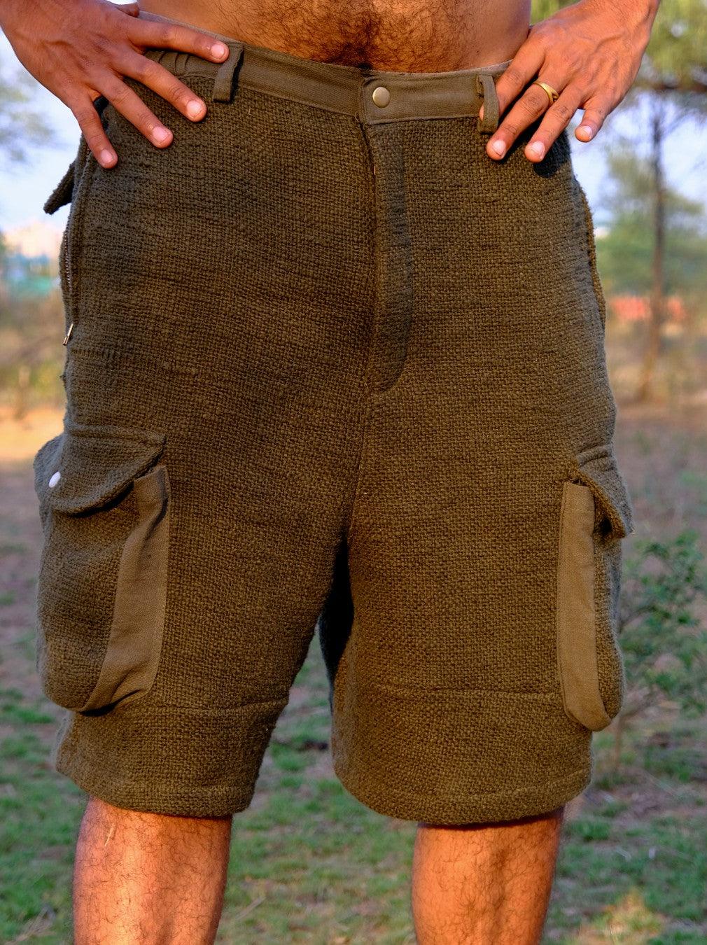These are the must-have Unisex Rave Cargo Half trousers from our Boho collection. Inspired by Boho culture which is known for its fusion of art, music, and core ideas this is gonna urge you to hit the dance floor. They are made from a cotton jute blend, which gives it a perfect texture of earthy look and absolute comfort. They have four pockets, metal buttons, buttonholes, and a drawstring waist to create a lasting impact. They are available in green and black colors. You can wear it with any of our shirts or t-shirt, it is that versatile. So what are you waiting for?