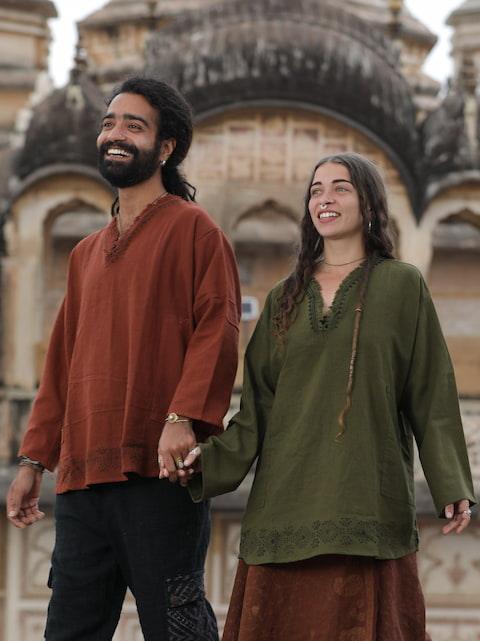 Introducing the Baggy Kurta, your one-stop-shop for a chilled out yet totally fashionable look. It's gender-neutral, made from a jute and cotton blend fabric, and comes in four stunning earthy shades. With a baggy fit, full sleeves, V neck, two pockets, and rough edges, it's great for lounging and looks even better with our tribal handmade block print. What more could you ask for? Live your best boho life today!