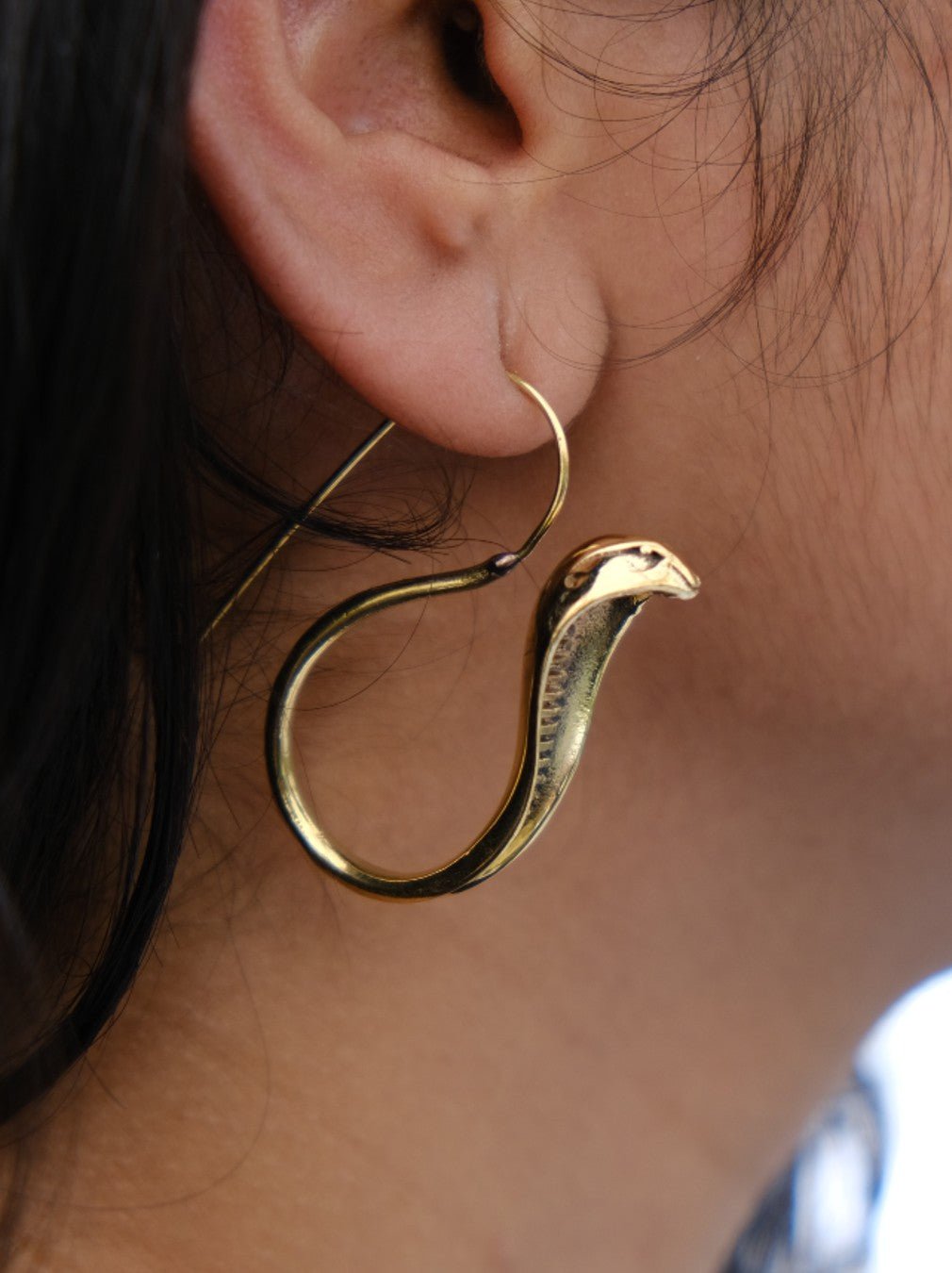 The naga earrings are a brass metal, light weight set of earrings that come in the style of a serpent or cobra. These make a great addition to any outfit and are perfect for anyone looking to add a touch of tribal style to their wardrobe. The naga earrings are also available in a gold finish and make for a great gift idea for any occasion.