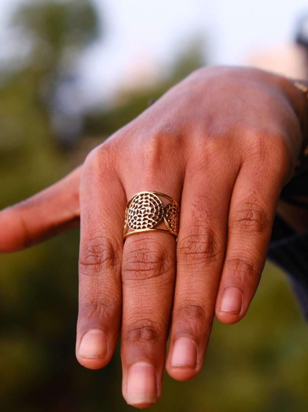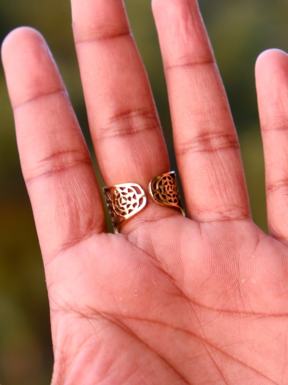 . The Sri yantra is a symbol of the Hindu goddess Lakshmi, who is the deity of wealth, prosperity, and purity. This ring is a powerful tool for attracting financial abundance and good luck.The Sri yantra ring is made of brass metal and is adjustable to fit any finger size