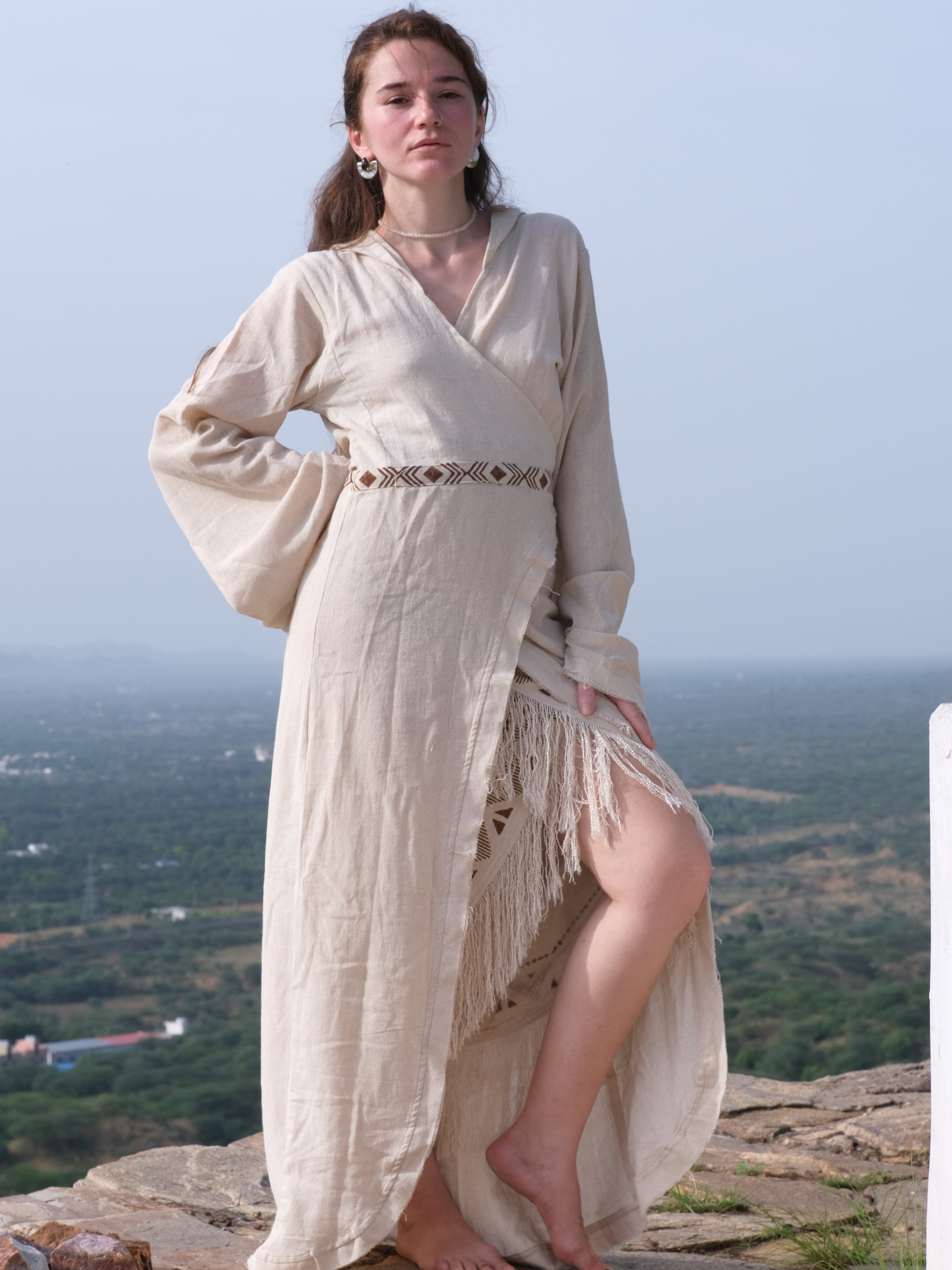 Experience the beauty of nature in the Nitya Coat Dress. Crafted with organic cotton by skilled artisans, this dress exudes a free-spirited and bohemian vibe while embracing nature's inspiration. Let your inner chic shine with this enchanting and playful dress.