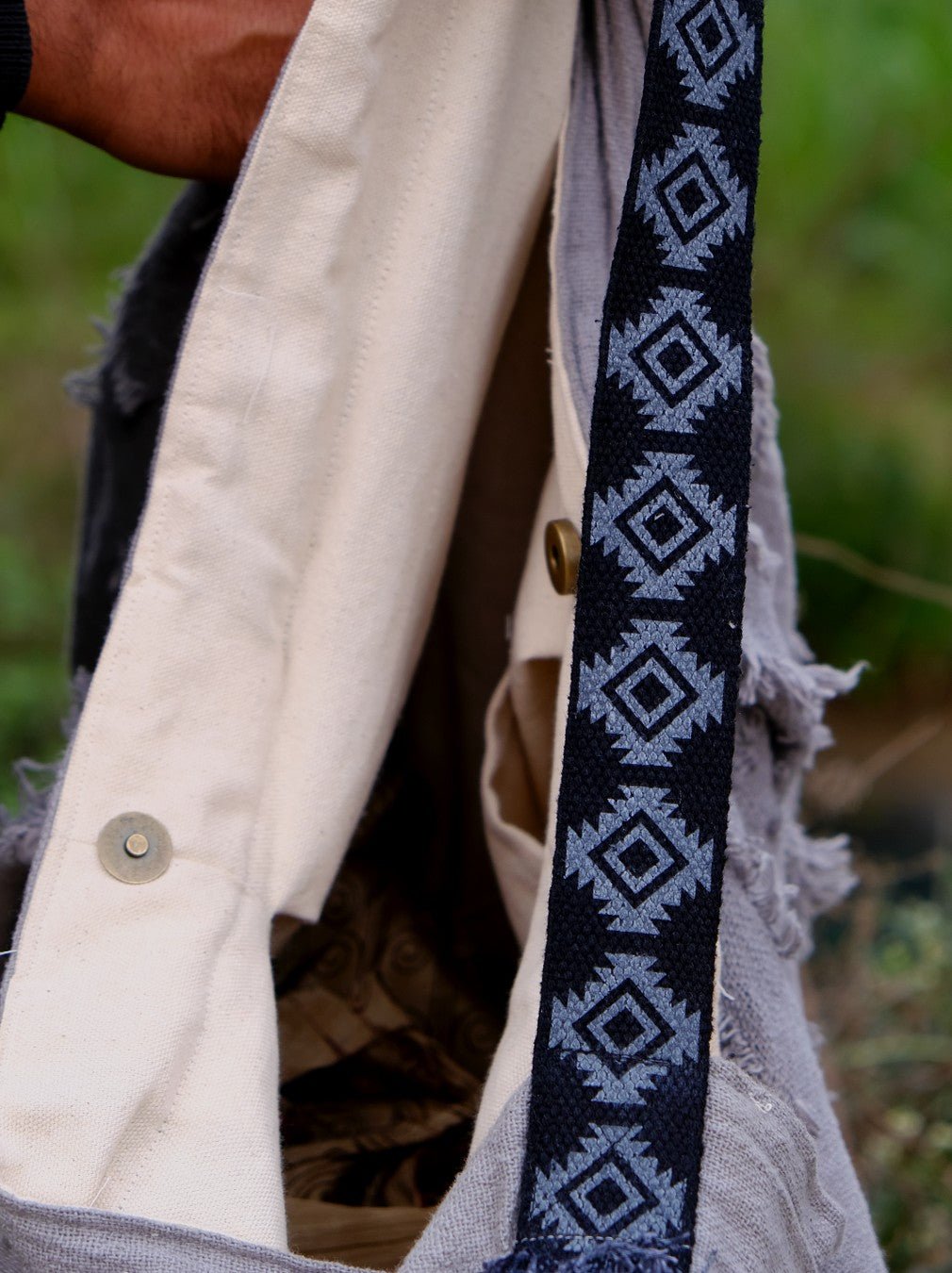 Introducing the Chavo Bag, the ultimate combination of rustic and stylish! With frayed cotton fabric and a natural feel, this bag is all about that boho-chic look. But it's not all style and no substance - a main compartment and small zipper pocket make it practical, too. Unisex and versatile, it's the perfect accessory for anyone wanting to make a statement!